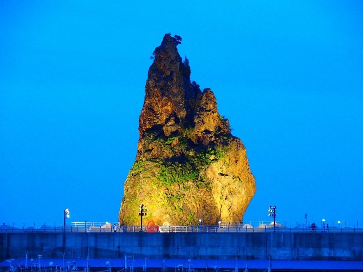 울릉도 여행 가볼만한곳 일곱 번째, 오징어잡이 불빛과 저동항 풍경을 모두 어우르는 자리에 서 있는 촛대바위는 일출이 아름다운 곳입니다. 지금은 방파제의 일부가 되어 낚시를 즐기는 사람들의 사랑을 받고 있기도 한 이 바위에는 효녀바위라고 일컬어지게 된 전설이 내려오고 있습니다.