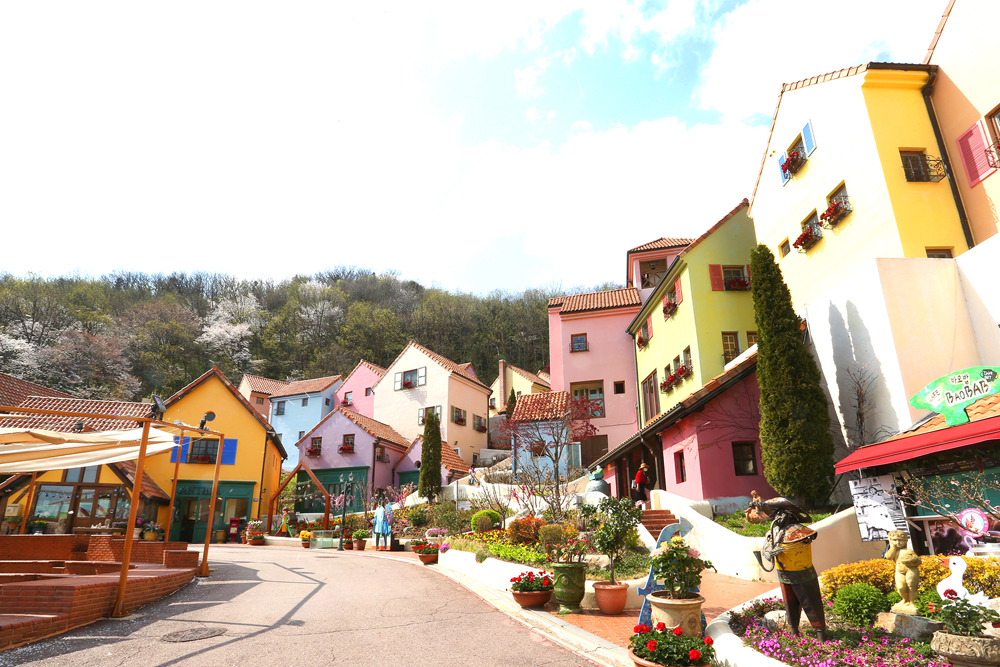 워낙 건물들이 알록달록하여 찍는대로 화보가 되는 곳이기도 합니다. 그리고 쁘띠프랑스마을 중간중간에 있는 아름다운 벽화들은 인생사진을 남기기에 충분하지요.