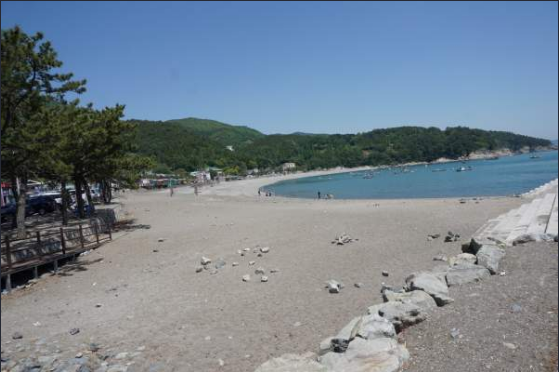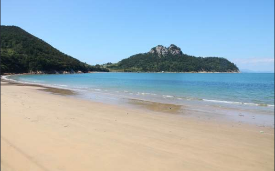 근처에 좋은 편의시설도 많이 있습니다. 야영객들을 위한 이런 해수욕장은 없습니다. 남해에서 가장 아름다운 바다라고 생각합니다. 바닷물의 색은 순수한 파란색입니다. 길이 540m, 폭 25m, 평균 수온 25℃로 따뜻하여 해수욕장소로 최적입니다. 특히 이곳 백사장의 검은 모래는 원적외선 방사선이 많아 모세혈관을 확장시켜 혈액순환을 돕고 땀 분비를 촉진한다고 합니다.