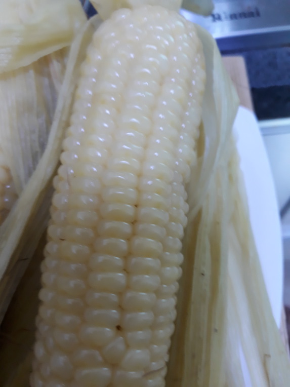 손질하기 전의 옥수수입니다. 옥수수가 이상태라 바로 삶지못하고 손질부터 해야합니다.