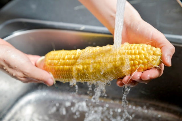 옥수수 삶는 방법 5. 손질한 옥수수는 깨끗하게 세척합니다.