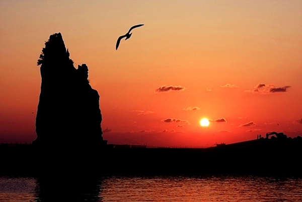 울릉도 여행 가볼만한곳 일곱 번째, 오징어잡이 불빛과 저동항 풍경을 모두 어우르는 자리에 서 있는 촛대바위는 일출이 아름다운 곳입니다. 지금은 방파제의 일부가 되어 낚시를 즐기는 사람들의 사랑을 받고 있기도 한 이 바위에는 효녀바위라고 일컬어지게 된 전설이 내려오고 있습니다.