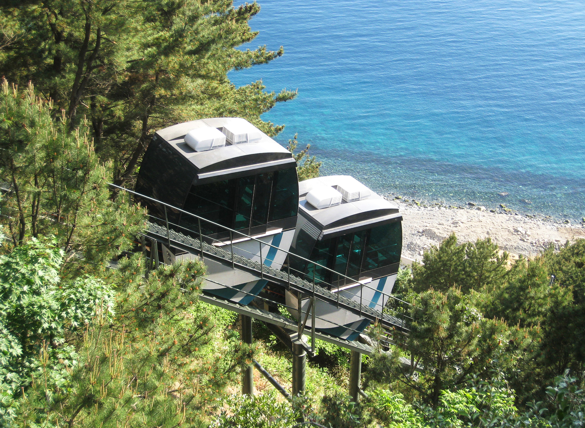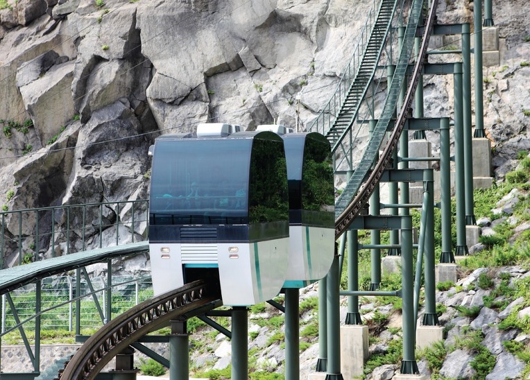울릉도 여행 가볼만한곳 첫 번째, 울릉도의 비경을 한눈에 감상할 수 있는 관광 모노레일은 태하향목의 정상을 편안하게 감상할 수 있습니다. 관광모노레일 모노레일 재원은 총연장 304m의 레일에 20인승카 2대가 동시 운행하며 분당 50m의 속도로 산정까지는 약 6분 정도가 소요되고 최대 등판각도가 39도나 되지만 언제나 자동으로 수평을 유지하여 주기 때문에 안심하고 이용할 수 있습니다.