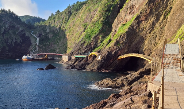 도동 해안산책로는 울릉도 초기 화산활동의 특징을 간직한 다양한 지질구조가 관찰됙도하며, 도동항에서 도동등대로 갈수록 암석 생성연대가 대체로 젊어지는 경향을 보인다고 합니다. 그리고 도동 행남해안산책로를 걷다보면 평평한 평지 같은 길도 있지만 경사가 심한 계단길도 있어요.