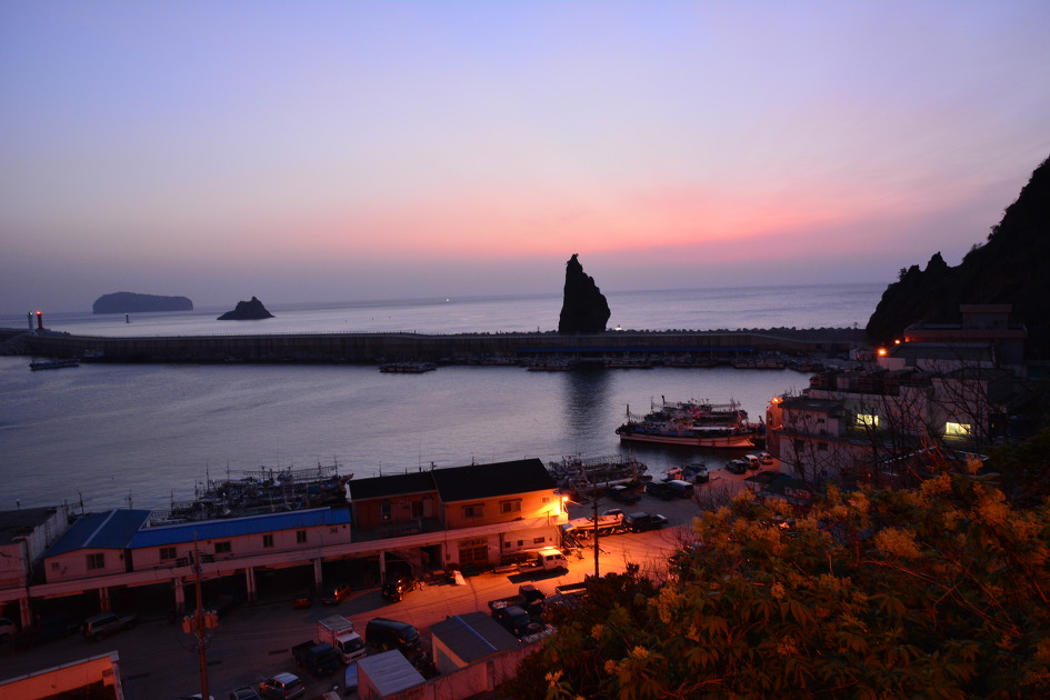 울릉도 여행 가볼만한곳 네 번째, 경상북도 울릉군 저동리에 있는 저동항은 울릉군에서 가장 큰 항구입니다. 저동항은 울릉도 오징어 대부분이 취급되는 항구로 1967년 1월 어업전진기지로 지정되었습니다. 오징어를 잡기 위해 집어등을 밝힌 어선들의 오징어잡이배 불빛으로 유명한 '저동어화(苧洞漁火)는 울릉 8경 중에 하나로 유명합니다. 또한 항구 방파제 옆에 있는 촛대바위는 홀아버지와 살던 딸이 바다로 나가 돌아오지 않는 아버지를 애타게 기다리다가 바위가 되었다는 전설이 있어 효녀바위라고도 불립니다.